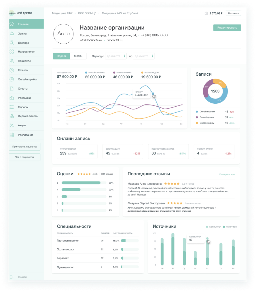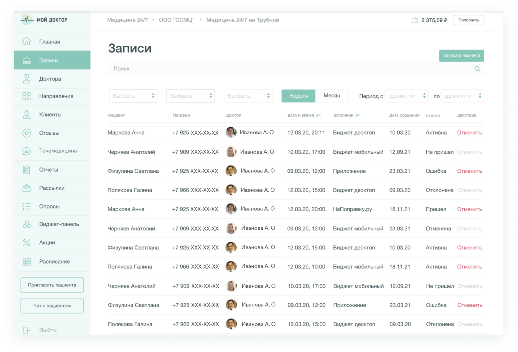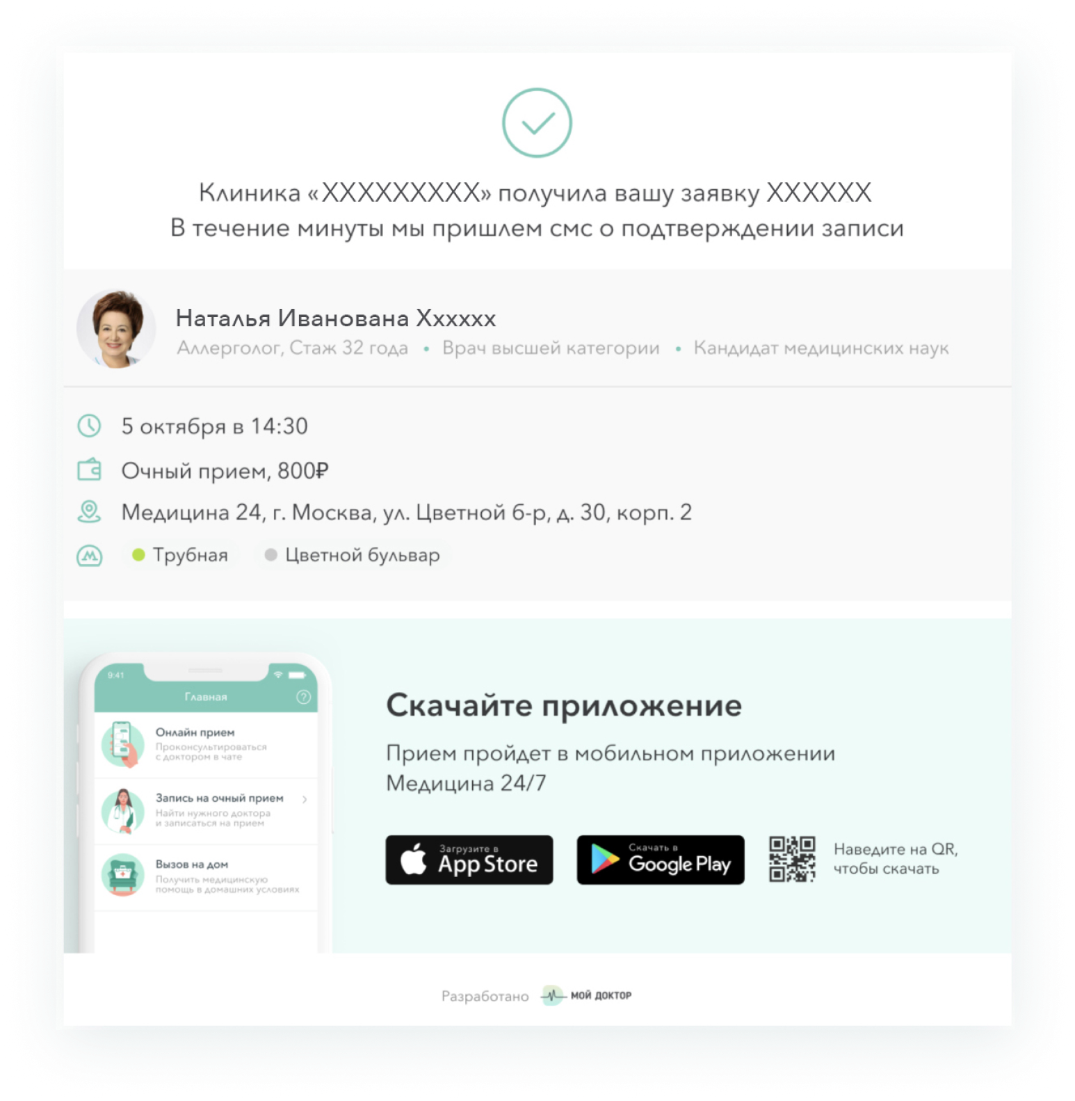 выстроена таким образом, чтобы упростить коммуникацию с врачем и привести пациента на повторный