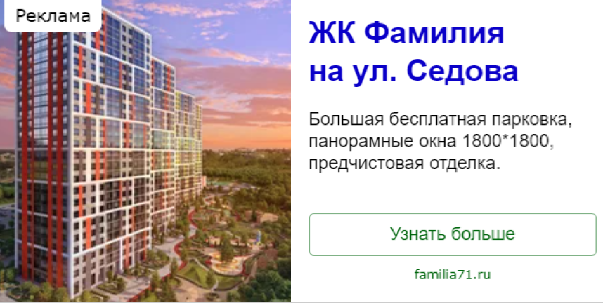 ним показываются конкуренты (при вводе поисковой фразы «ЖК Фамилия» была выдача других