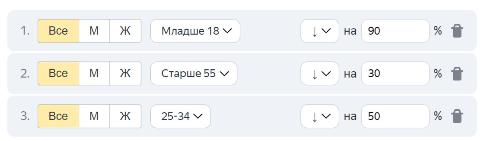 Установка корректировки ставок исходя из