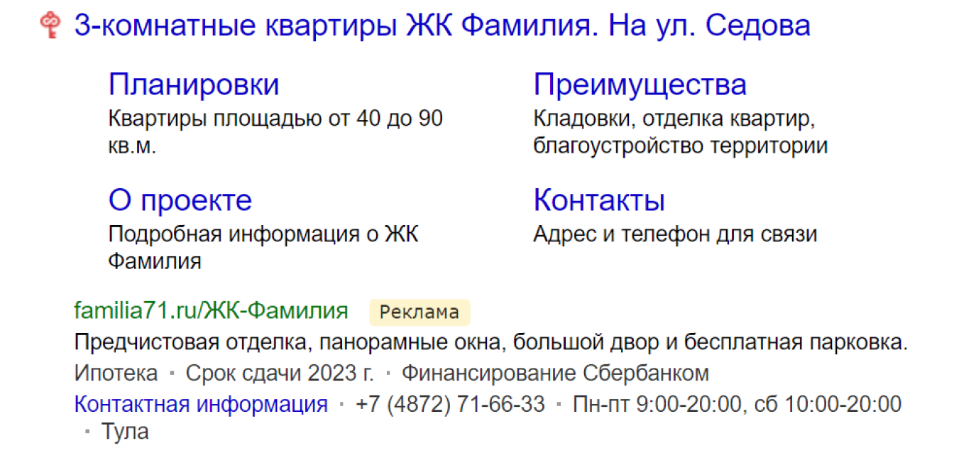 фразу «ЖК Фамилия»). Поэтому пользователи, вводя запрос «ЖК Фамилия» видели конкурентов