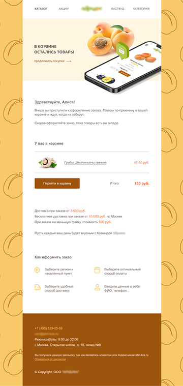 заинтересованность в рассылках. Внести правки в сценарий и доработки в контент.