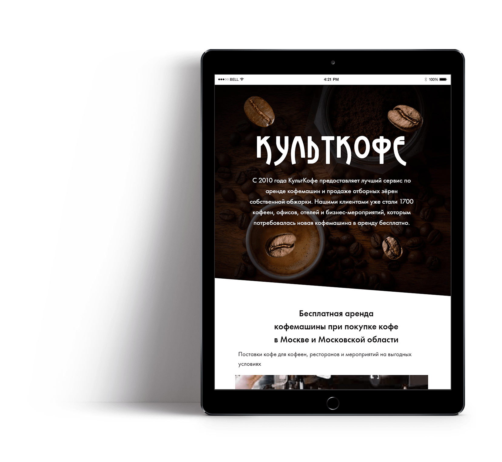 Поисковое продвижение Kultkofe.ru – уникальный проект, который позволил нам развенчать сразу несколько мифов о сложности продвижения одностраничных сайтов, сделанных к тому же на Tilda.