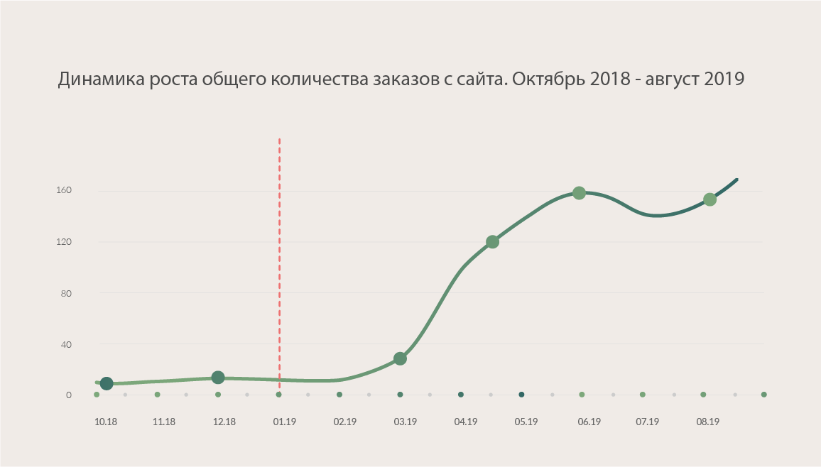 получить видимое увеличение заказов. А уже на 4 месяц мы вышли на достаточно серьёзные