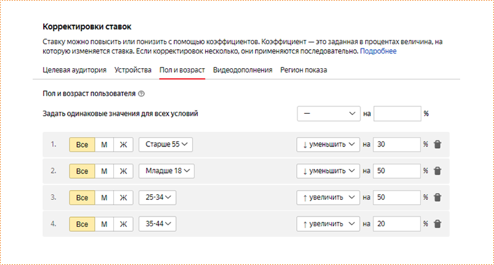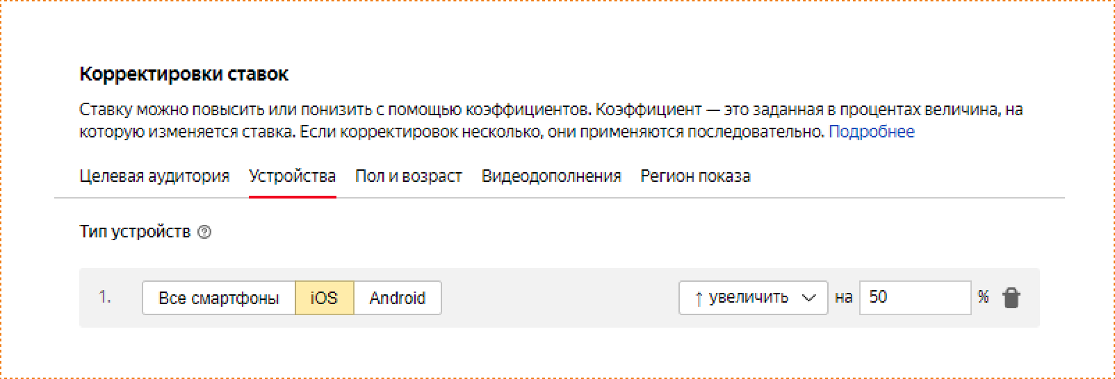 устройствам и добавление корректировки ставок с целью экономии рекламного бюджета путем снижения
