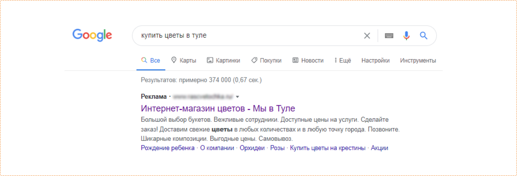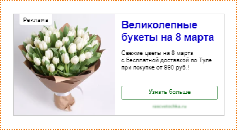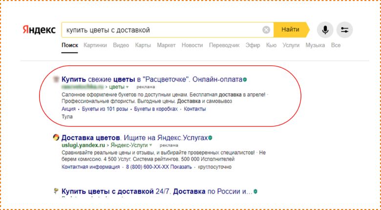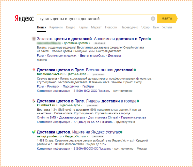 запросов «доставка цветов в Туле» с целью «выцепить» платежеспособную аудиторию, которая может