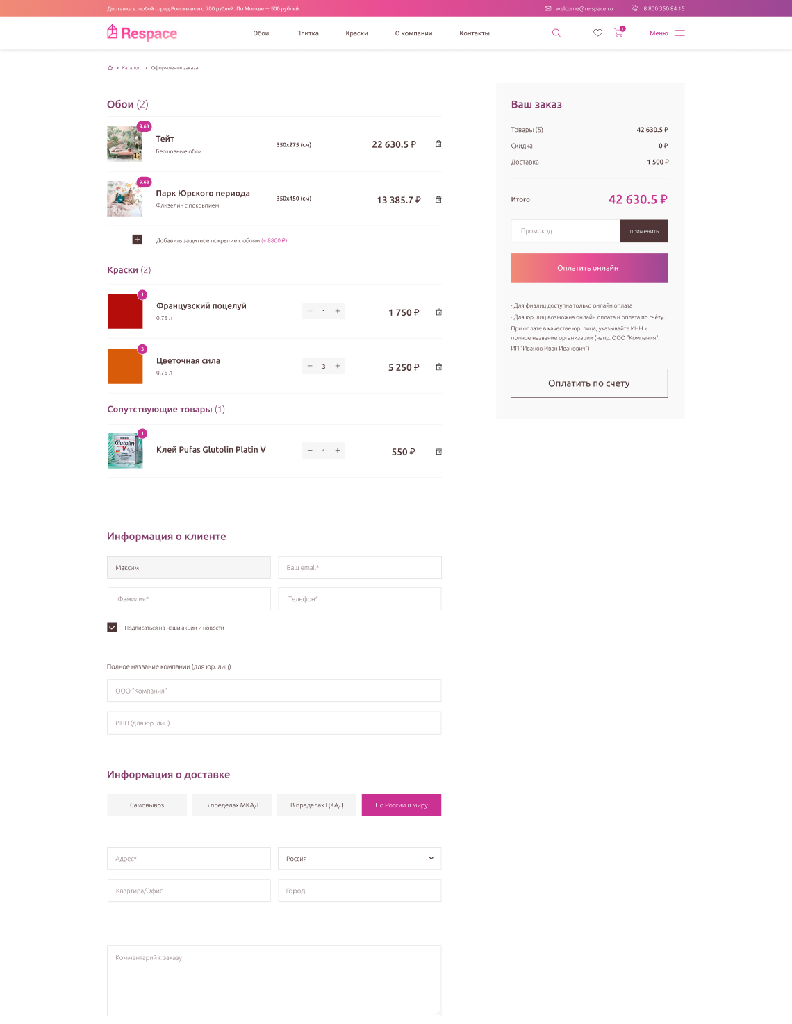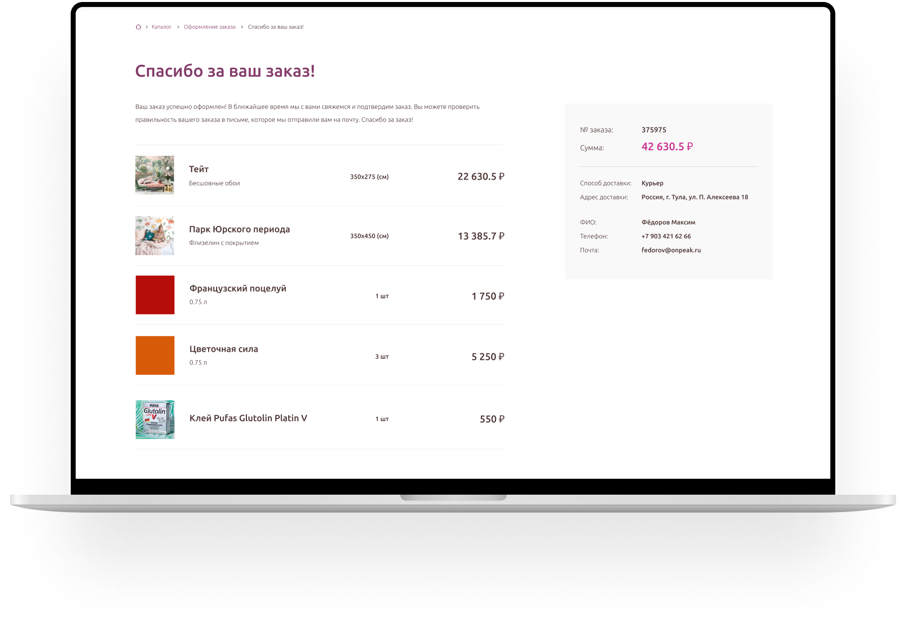 и доставки. Так же созданы страницы, уведомляющие пользователя о факте успешной оплаты и